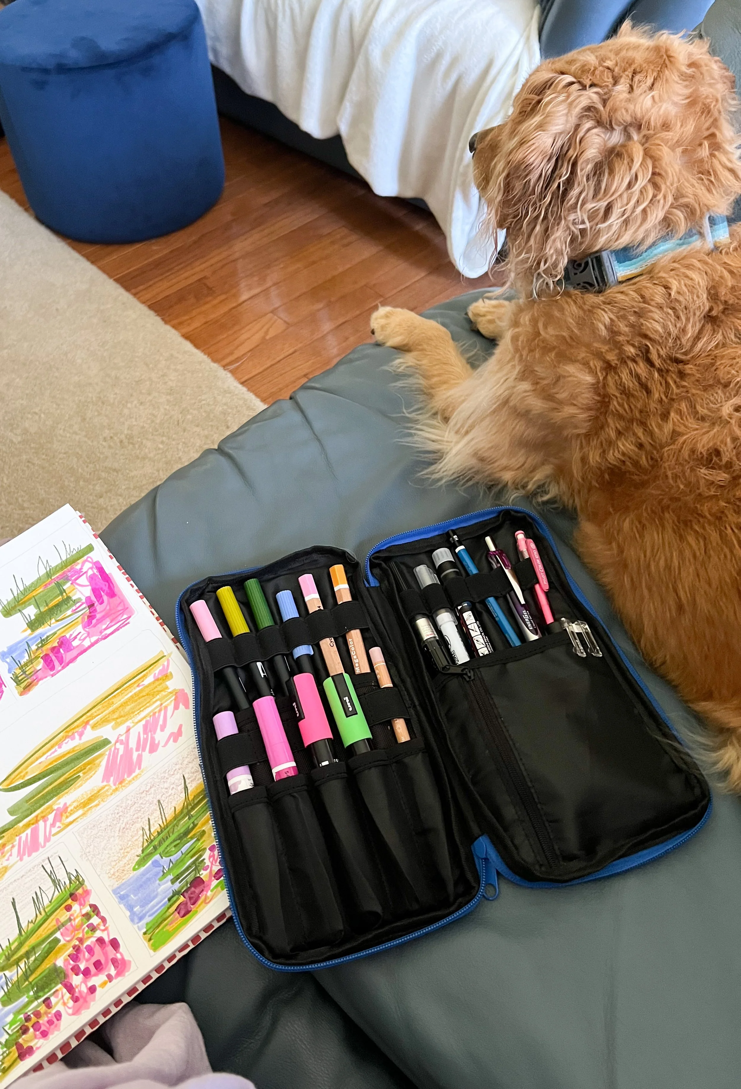 As an individual with Chronic Health Issues, I can’t always sit in my designated art space where everything is right there in front of me. There are days when I am sitting on the couch or out in the backyard watching my dog soak up some UV Rays, and I want to create. The only problem is, I have to take several cases with me, One to hold my pencils and markers, one to hold my acrylic markers (because they are too big to fit in my other pencil case) and one to hold my NeoColors (because they are too small for the other to cases).